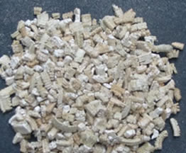 銀白色蛭石具有隔熱、耐凍、抗菌、防火、吸水、吸聲等優(yōu)異性能,在800~1000℃下焙燒0.5~1.0分鐘,體積可迅速增大8~15倍,最高達(dá)30倍。膨脹后的比重50-200kg/m3,顏色變?yōu)殂y白色,生成疏松的膨脹蛭石。